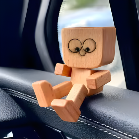 حركة اهتزازية لطيفة تُضفي المرح: يتميز هذا الرجل الخشبي المصنوع يدويًا بقدمين تهتزان مع كل نقرة أو لمسة. سواءً وُضع على لوحة قيادة سيارتك أو مكتبك، فإن حركته المرحة تُضفي البهجة والحيوية على يومك.